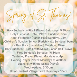 Announcements for the parish email are due via email by noon on Wednesday of each week. You can email them to announcements@stthomasglassboro.org